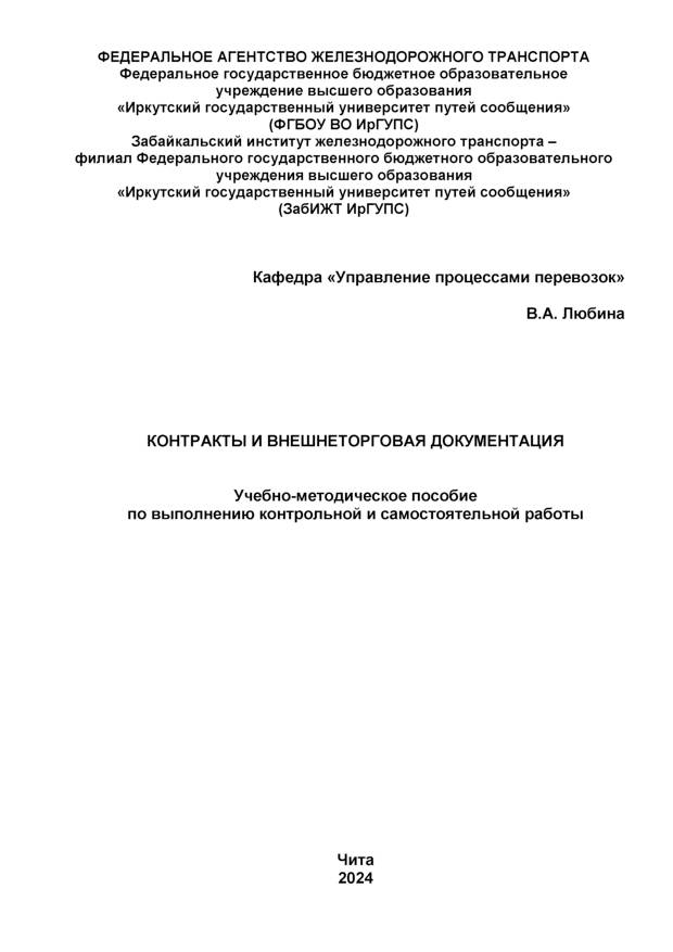 | Покровская В.В. Внешнеэкономическая деятельностьГод издания: 2014 Описание: учеб. Ключевые слова: ВТО, контракт купли-продажи, международная торговля, |  | Курош А.Г. Курс высшей алгебрыГод издания: 2007 Описание: учеб. Ключевые слова: линейные уравнения, матрица, комплексные числа, евклидовы пространства, группы |  | Милютин А.Г. ГеологияГод издания: 2014 Описание: учеб. Ключевые слова: полезные ископаемые, геодинамика, месторождения, каустобиолиты, петрография |  | Обухова Л.Ф. Возрастная психологияГод издания: 2014 Описание: учеб. Ключевые слова: детство, психоанализ, подростковый возраст |  | Овчаренко С.М., Четвергов В.А., Бухтеев В.Ф. Техническая диагностика локомотивовГод издания: 2014 Описание: учеб. пособие Ключевые слова: диагностика |  | Менакер К.В. Микропроцессорные информационно-управляющие системыГод издания: 2014 Описание: Методические указания по выполнению лаболаторных работ |  | Кучеров С.В., Овсейчик С.З., Христосенков С.А., Чуйко А.Д., Ларченко А.В., Корчма О.В. Конструкция, устройство и работа электроподвижного составаГод издания: 2014 Описание: Методическое пособие по выполнению лабораторных работ |  | Виноградова Н.И. Психодиагностика персоналаГод издания: 2014 Описание: Учебное пособие Ключевые слова: психологическая диагностика, ассессмент -центр, концепция личности, тестирование, классификация тестов |  | - Основы философииГод издания: 2009 Описание: учеб. Ключевые слова: история философии, человек, гражданское общество, сознание, мышление, познание, техника, глобальные проблемы |  | - Автоматизированные системы управления электроподвижным составомГод издания: 2014 Описание: учеб. В 3 ч. Ключевые слова: САУ, устойчивые системы, импульсные системы, цифровые системы, непрерывные системы |  | Вигандт Л.С., Сараева Ю.И. Экономика организаций (предприятий). Курс лекцийГод издания: 2014 Описание: учебное пособие Ключевые слова: экономика предприятия, национальная экономика, основные фонды, оборотные средства предприятия, персонал, стратегия предприятия, ценовая политика, планирование |  | Быкова Н.В. Таможенные платежиГод издания: 2024 Описание: учебно-методическое пособие по выполнению практических, контрольной и самостоятельной работ |  | Любина В.А. Контракты и внешнеторговая документацияГод издания: 2024 Описание: практикум |  | Любина В.А. Контракты и внешнеторговая документацияГод издания: 2024 Описание: учебно-методическое пособие по выполнению контрольной и самостоятельной работы |