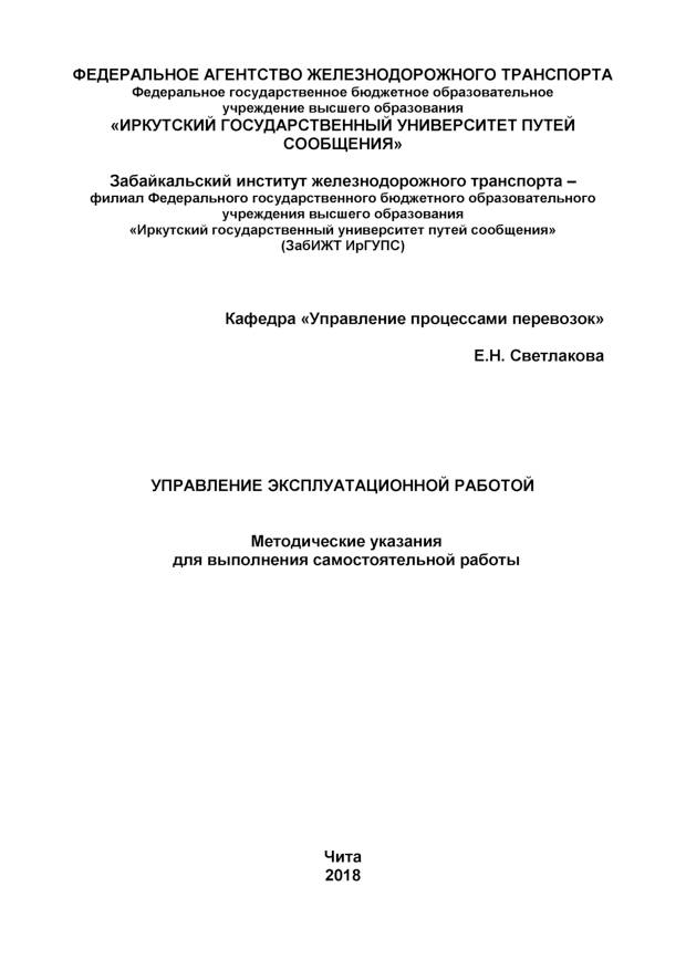![Управление эксплуатационной работой [Текст]](/cover/24122.jpg) | Светлакова Е.Н. Управление эксплуатационной работой [Текст]Год издания: 2018 Описание: методические указания для выполнения самостоятельной работы | ![Управление эксплуатационной работой [Текст]](/cover/24123.jpg) | Светлакова Е.Н. Управление эксплуатационной работой [Текст]Год издания: 2018 Описание: учеб. пособие для практических занятий Ключевые слова: нормирование маневровой работы, эксплуатационная работа, показатели работы, организация вагонопотоков | ![Организация движения поездов [Текст]](/cover/24124.jpg) | Светлакова Е.Н., Раевская П.Е. Организация движения поездов [Текст]Год издания: 2018 Описание: учеб. пособие для проведения лабораторного практикума (ТТП) Ключевые слова: движение поездов, имитационный тренажер, ведение документации, прием и сдача дежурства | ![Организация работы сортировочной станции [Текст]](/cover/24125.jpg) | Светлакова Е.Н. Организация работы сортировочной станции [Текст]Год издания: 2018 Описание: учеб. пособие к курсовой работе (ТТП) Ключевые слова: сортировочная станция, технология работы горки, маневровая работа, план-график станции |  | Червоная С.С. Аутсорсинг на магистральном транспортеГод издания: 2018 Описание: методические указания для самостоятельной работы |  | Светлакова Е.Н., Раевский Н.В., Зубков В.В., Раевская П.Е. Методы обработки информацииГод издания: 2018 Описание: учеб. пособие для практических занятий и самостоятельной работы Ключевые слова: эксперимент |  | Хохрякова С.В., Хохряков А.Н., Андреев А.В. Физическая культура и спортГод издания: 2017 Описание: методические указания по выполнению контрольной и самостоятельной работы |  | Гвоздева Е.Н., Логинова Е.Г. Financial English. Ч.1Год издания: 2018 Описание: учеб. пособие Ключевые слова: английский |  | Гвоздева Е.Н., Логинова Е.Г. Financial English. Ч.2Год издания: 2018 Описание: учеб. пособие Ключевые слова: английский |  | Поляков Д.Б. Постанархизм. Субъект в пространстве властиГод издания: 2018 Описание: монография Ключевые слова: постанархизм |  | Яковлев Д.А., Маниковский А.С. Режимы работы систем тягового электроснабженияГод издания: 2018 Описание: методические указания по выполнению практических работ |  | Яковлев Д.А., Маниковский А.С. Электроснабжение железных дорогГод издания: 2018 Описание: методические указания по выполнению практических и самостоятельной работ |  | Любина В.А., Михайлова Н.С. МенеджментГод издания: 2018 Описание: методические указания для самостоятельной работы |  | Любина В.А., Михайлова Н.С. МенеджментГод издания: 2018 Описание: методические указания по выполнению контрольных работ |