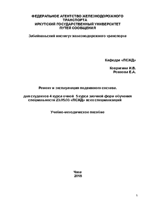 Информационные технологии и системы комплекного контроля технического состояния вагонов. методические указания для выполнения контрольной работы для студентов заочной формы обучения специальности 23.05.03 "подвижной состав железных дорог" специализации 2-