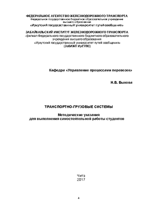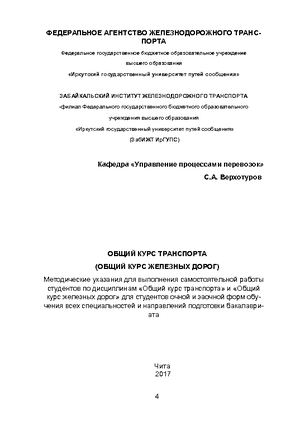 | Верхотуров С. А. Общий курс транспорта (Общий курс железных дорог)Год издания: 2017 Описание: методические указания для выполнения самостоятельной работы |  | Каликина Т.Н., Ташлыкова А.И., Копейкина С.В., Одуденко Т.А., Серова Д.С. Общий курс транспортаГод издания: 2018 Описание: учебное пособие Ключевые слова: транспортная система РФ, управление на транспорте, технический комплекс видов транспорта, технология транспортных процессов, оформление перевозки, перевозочный процесс, пассажирские перевозки, взаимодействие видов транспорта, безопасность на транспорте |