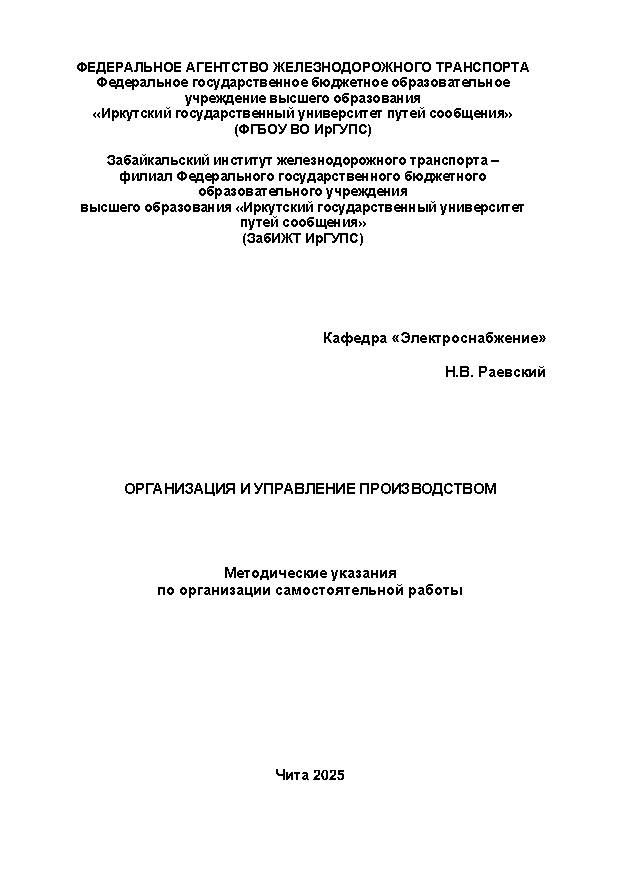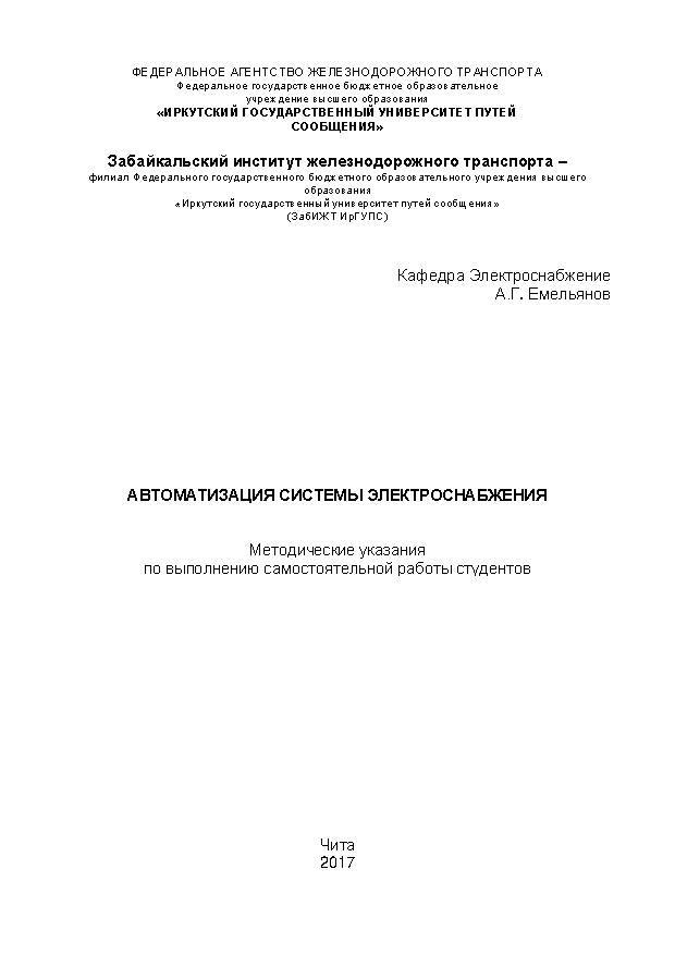 | Ларченко Е.А. Системы менеджмента качества при эксплуатации и обслуживании электроподвижного составаГод издания: 2018 Описание:Методические указания на практические занятия. |  | Филиппов С.А., Дурнов В.Г., Соловьева О.А. Тяговые и трансформаторные подстанцииГод издания: 2017 Описание: методические указания к лабораторным работам и практическим занятиям |  | Лескова Т.М. Планирование на предприятии. Конспекты лекций. Часть 2Год издания: 2018 Описание:Учебное пособие. |  | Емельянов А.Г. Автоматизация системы электроснабженияГод издания: 2017 Описание: методические указания по выполнению самостоятельной работы |  | Раевский Н.В., Лукьянова Е.В. Методические указания по организации самостоятельной работы студентовГод издания: 2018 |  | Рогалев А.В. Электрические машины. Расчет трехфазных силовых трансформаторов с масленным охлаждениемГод издания: 2017 Описание: методические указания по выполнению курсовой работы |  | Бушуев Е. М. Эксплуатация технических средств обеспечения движения поездовГод издания: 2017 Описание: методические указания по самостоятельной работе |  | Ворончихин К.Ю. Мосты на железных дорогахГод издания: 2017 Описание: методические указания для самостоятельной работы |  | Андреев А.В. Фитнес и аэробикаГод издания: 2017 Описание: методические указания по выполнению контрольной работы |  | Андреев А.В., Наумов А.И., Астафьев В.С. ГимнастикаГод издания: 2017 Описание: методические указания по выполнению контрольной работы |  | Андреев А.В. Спортивные игрыГод издания: 2017 Описание: методические указания по выполнению контрольной и самостоятельной работы |  | Андреев А.В. Легкая атлетикаГод издания: 2017 Описание: методические указания по выполнению контрольной и самостоятельной работы |  | Соколов Ю.И., Лавров И.М. Поведение потребителей на транспортном рынкеГод издания: 2018 Описание: учебное пособие Ключевые слова: транспортный рынок, потребитель, потребительское поведение, маркетинг на транспорте, информационный поиск, транспортные тарифы, ценовая эластичность спроса, качество транспортного обслуживания |  | Четвериков В.С., Степанов В.В. Материаловедение и технология конструкционных материаловГод издания: 2017 Описание: методическое пособие по выполнению лабораторных работ |