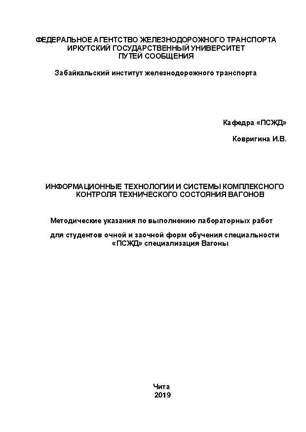 | Ковригина И.В. Информационные технологии и системы комплексного контроля технического состояния вагоновГод издания: 2019 Описание: методические указания по выполнению лабораторных работ (Вагоны) |  | Ковригина И.В. Ресурсосберегающее управление технологическими процессамиГод издания: 2019 Описание: методические указания для выполнения практических работ |