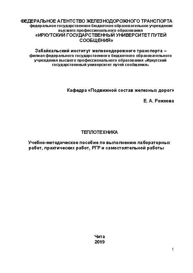 | Рожкова Е.А. ТеплотехникаГод издания: 2019 Описание: методические указания по выполнению контрольной работы |  | Рожкова Е.А. ТеплотехникаГод издания: 2019 Описание: учебно-методическое пособие по выполнению лабораторных работ, практических работ, РГР и самостоятельной работы |