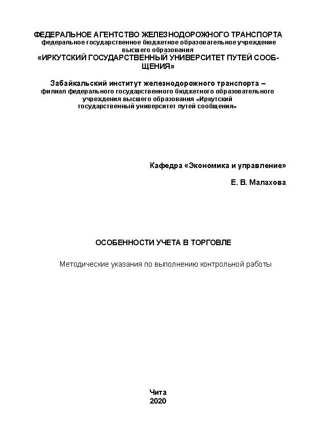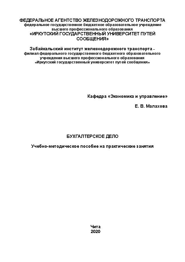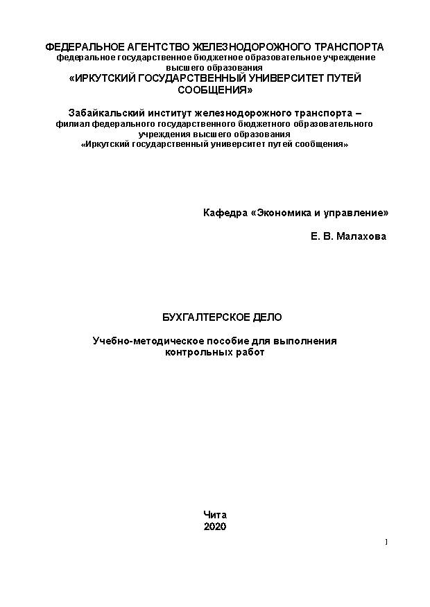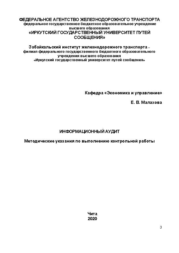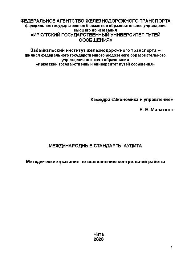 | - Проектирование реконструкции железных дорогГод издания: 2019 Описание: учебное пособие по курсовому и дипломному проектированию Ключевые слова: проектирование железных дорог, реконструкция железных дорог, Благоразумов, Восточная Сибирь, Забайкалье, графические материалы, новая Транспортная стратегия, перспективы, увеличение мощности железных дорог, примеры расчетов, проектирование продольного профиля, проектирование поперечных профилей, научно-исследовательская работа, жизненный цикл железнодорожного пути |  | Малахова Е.В. Аудит финансовых институтовГод издания: 2020 Описание: методические указания по выполнению контрольной работы |