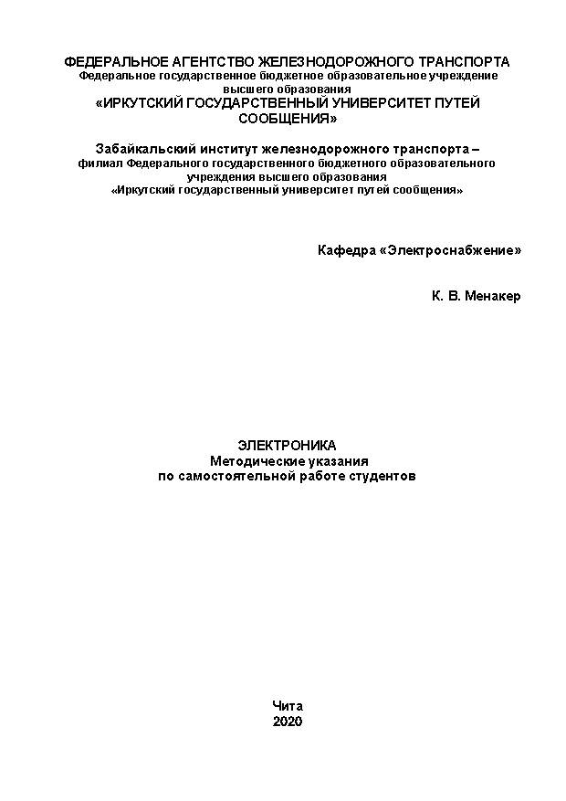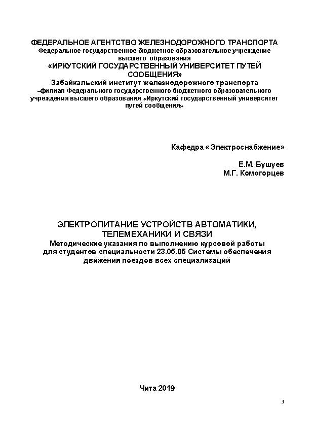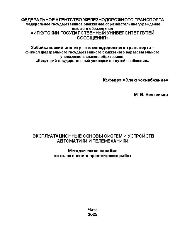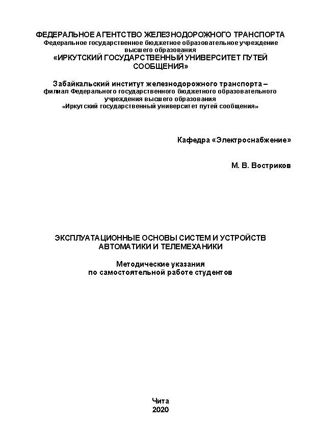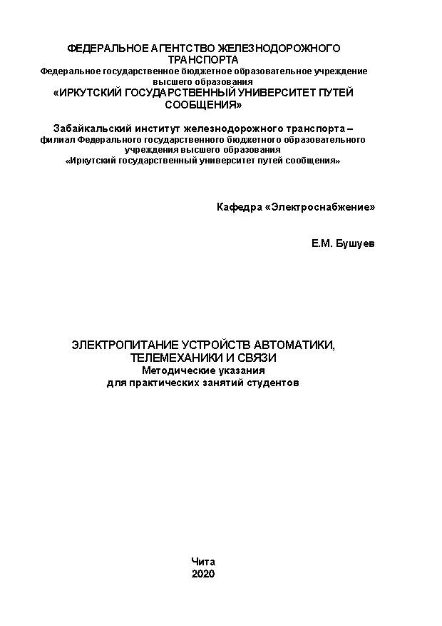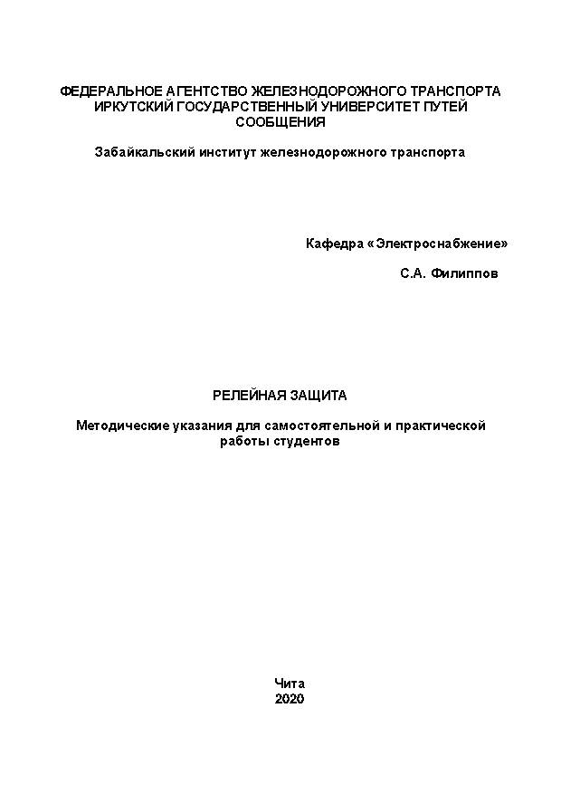 Релейная защита : метод. указания для самостоятельной и практической работы студентов очной и заочной форм обучения специальности 23.05.05 «Системы обеспечения движения поездов» специализации «Электроснабжение железных дорог».