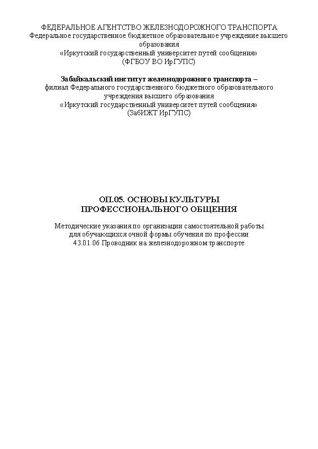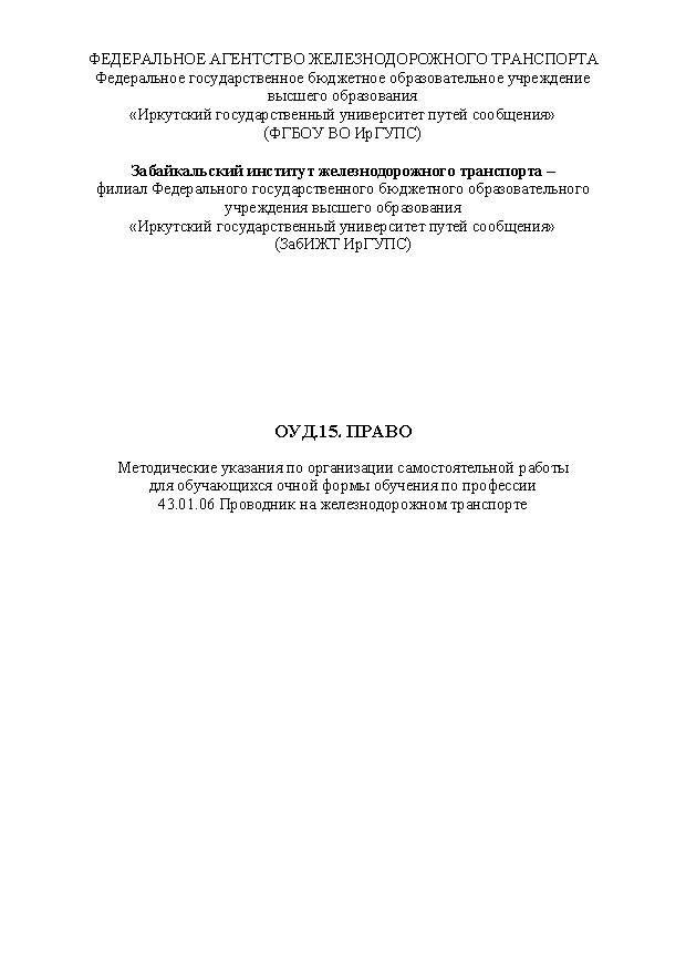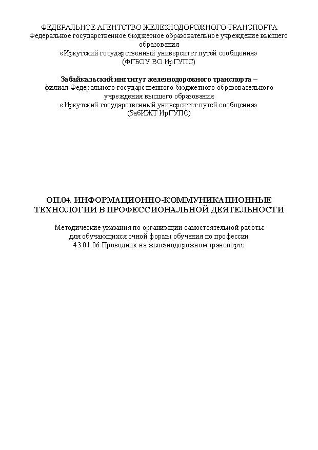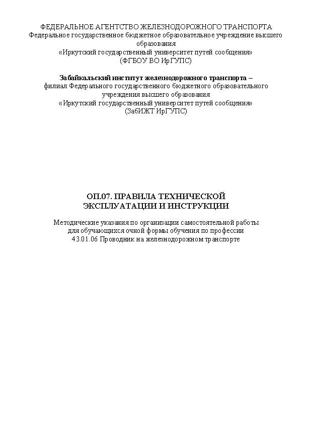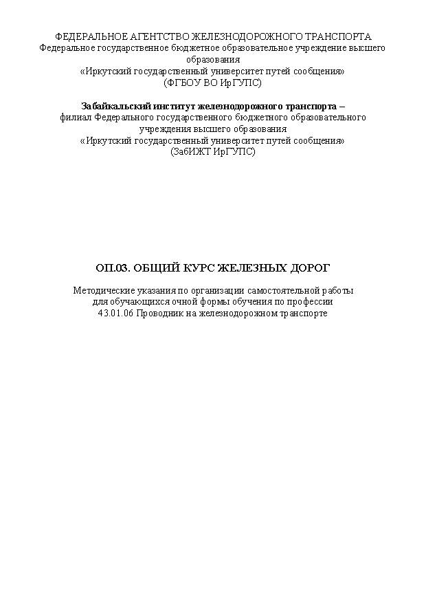 Описание: Методические указания по организации самостоятельной работы (Проводник на железнодорожном транспорте)