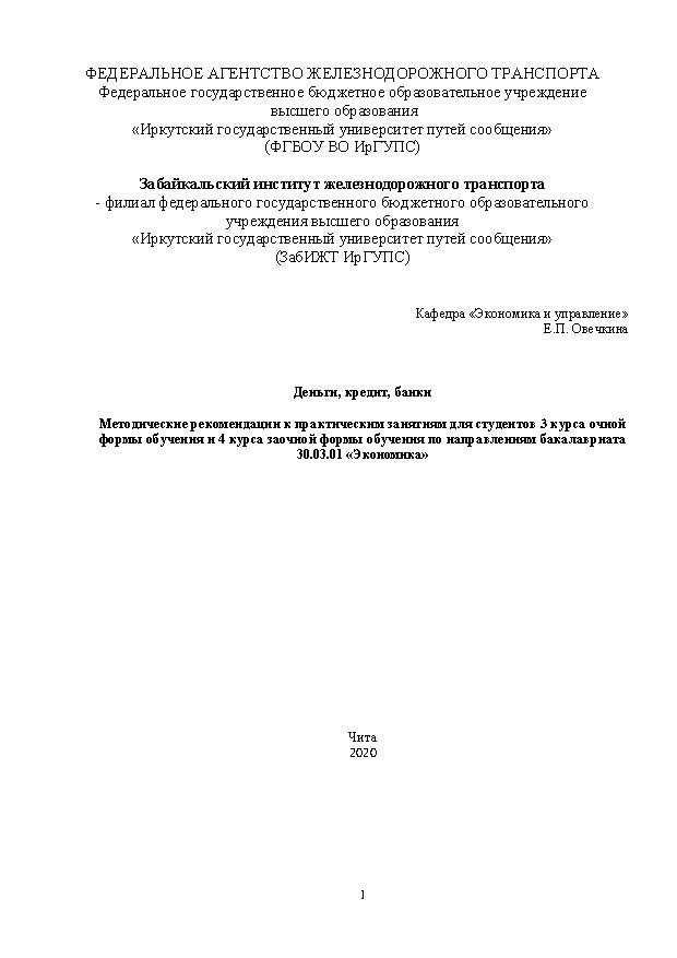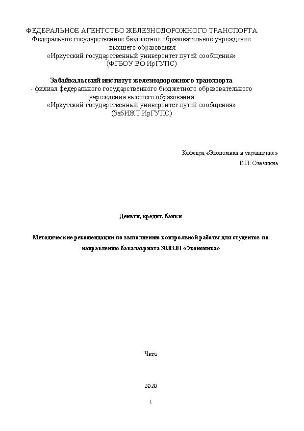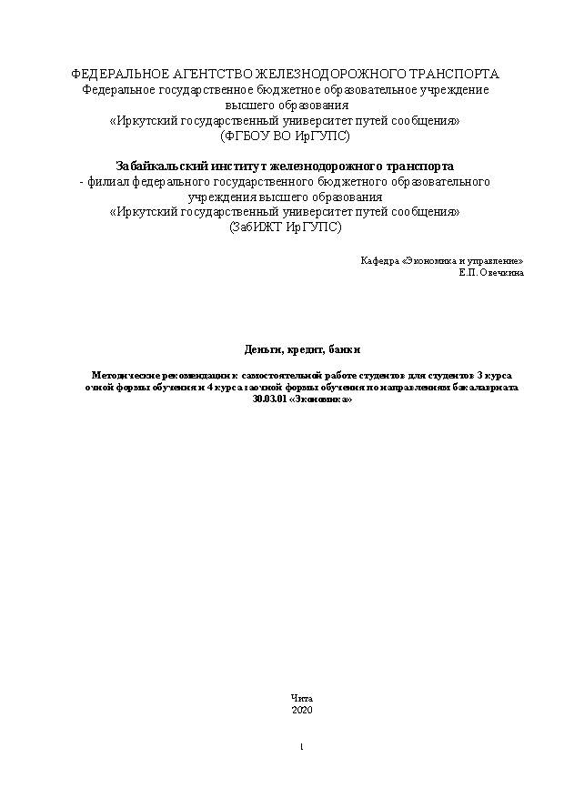| Непомнящих Е.В. Технология и механизация содержания железнодорожного путиГод издания: 2020 Описание:Методические указания на практические занятия. Методические указания по выполнению лабораторных работ. |  | Овечкина Е.П. Деньги, кредит, банкиГод издания: 2020 Описание: методические рекомендации к самостоятельной работе |